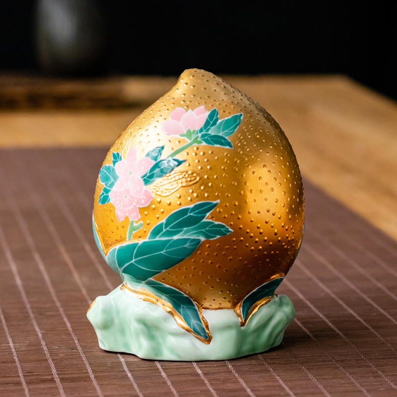 Master 999 True Gold Hand drawing Department of Golden Craftsmanship First Man Provincial Artificial Beauty Master Shaw Jianhui Shou Peach Pendulum Pieces