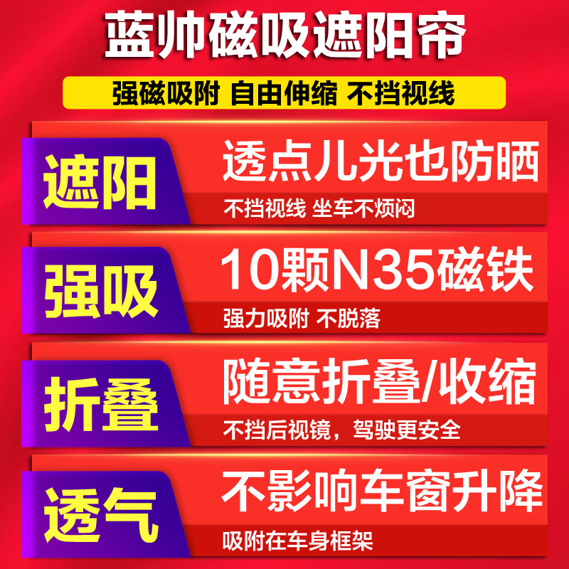 Car shading curtain window magnetic suction type sunscreen thermal insulation cloth car curtain glass light shading shading magnet vehicular car