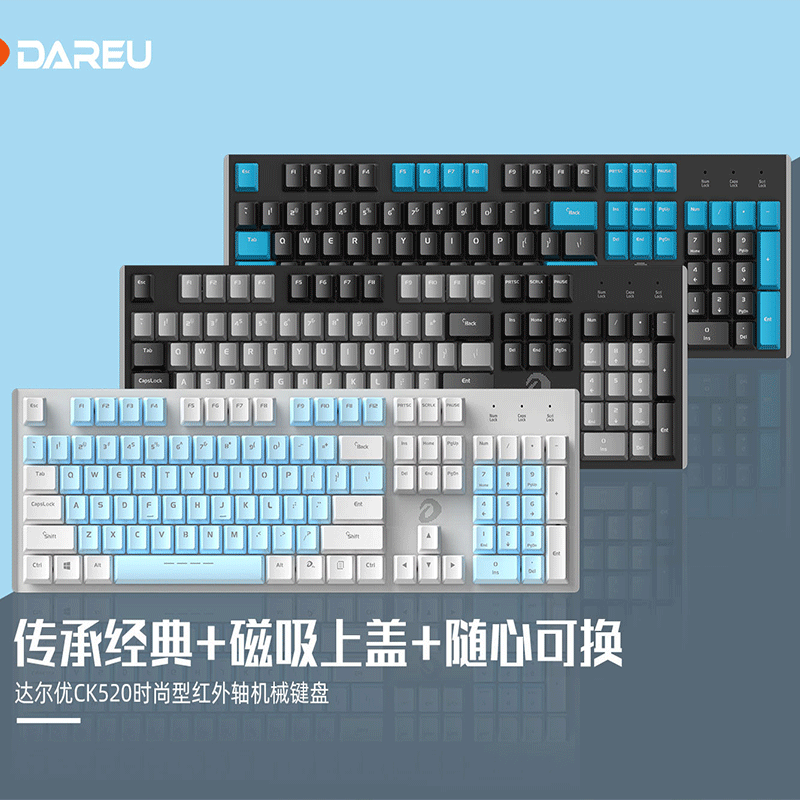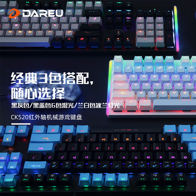 Daryou Wrangler mechanical keyboard CK520 computer network coffee e-sports games RGB waterproof light blue axis infrared axis