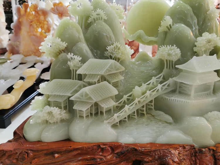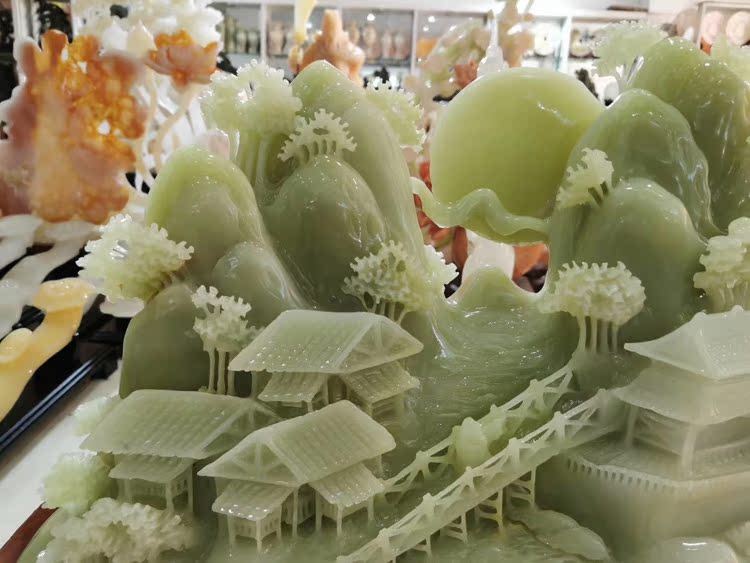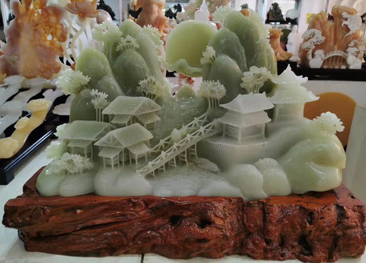 Afghanistan natural jade ornaments landscape carvings splendid rivers and mountains rising sun Dongsheng carvings Home furnishings gifts