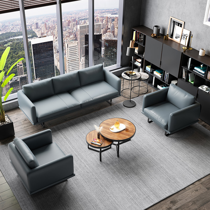 Nordic office sofa Genuine Leather Brief Modern Business Hospitality guests Leisure trio Place office sofa