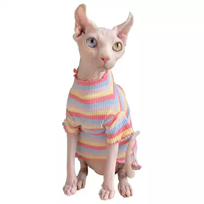 Spring Summer Sphenx no German hairy cat clothes dwarf foot vest with sleeve lace collar striped inner clothes cat clothes