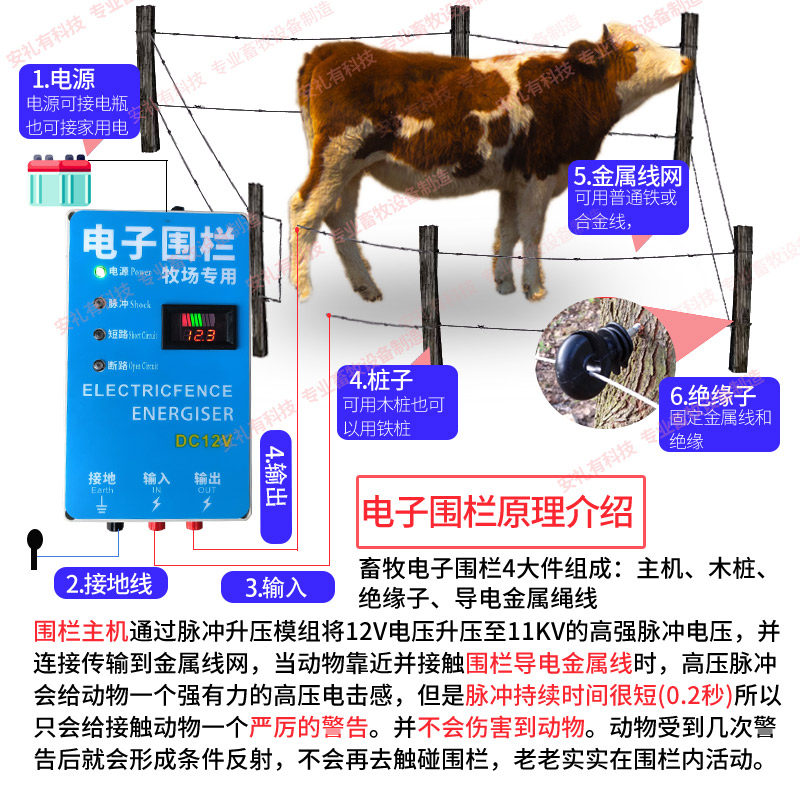Animal Husbandry Electric Fence Pulse Electronic Fence Host Ranch Cattle and Sheep Special Breeding Full Set of High-Voltage Power Grid System