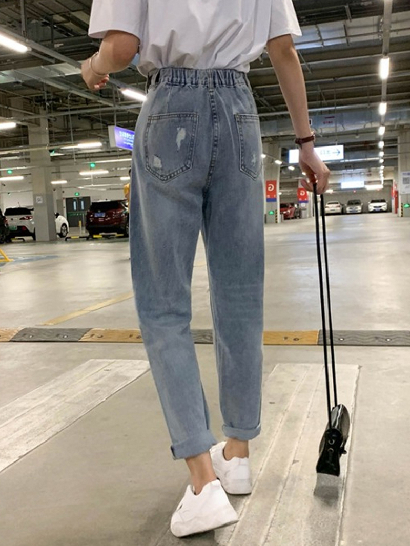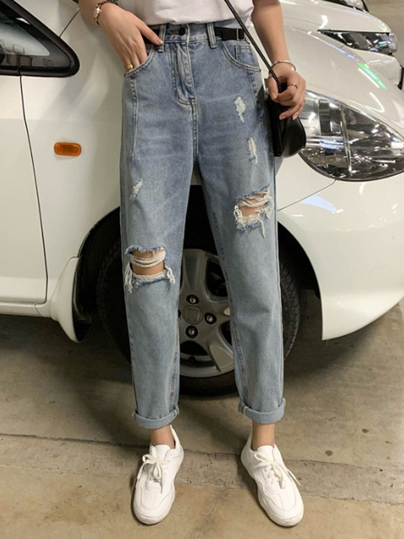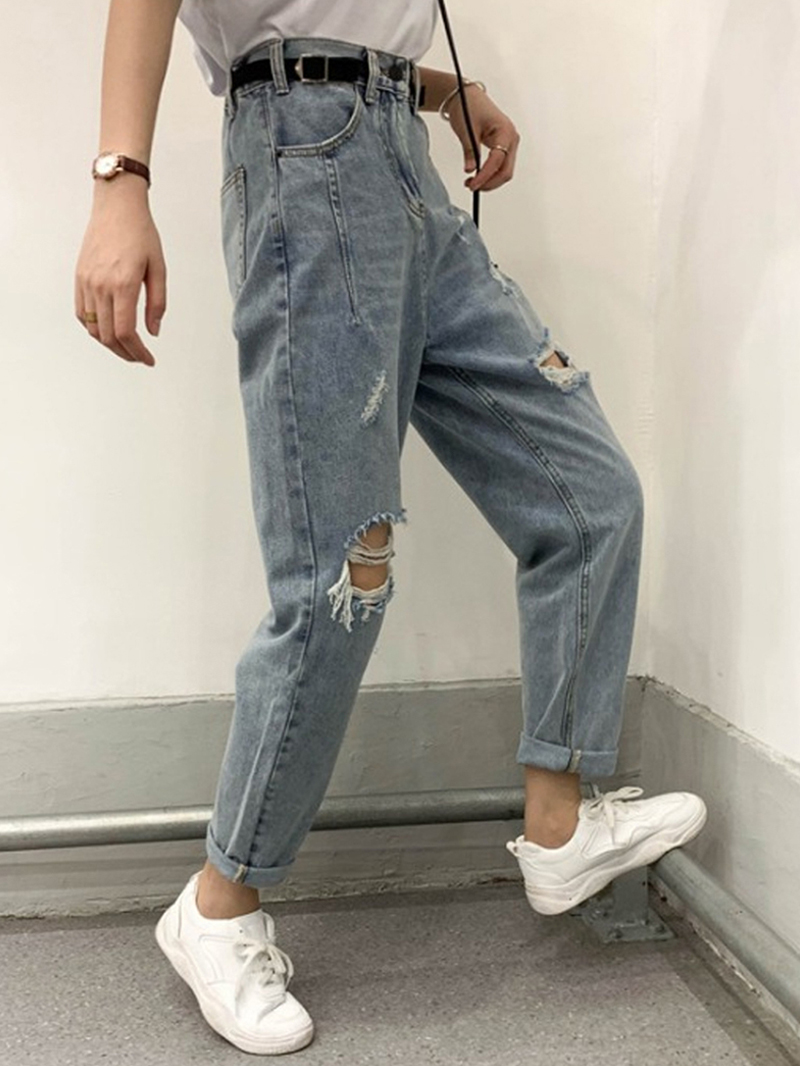 Large size women's hole jeans lax pants in 2021 new daddy pants beggar ninety - point daddy pants tide