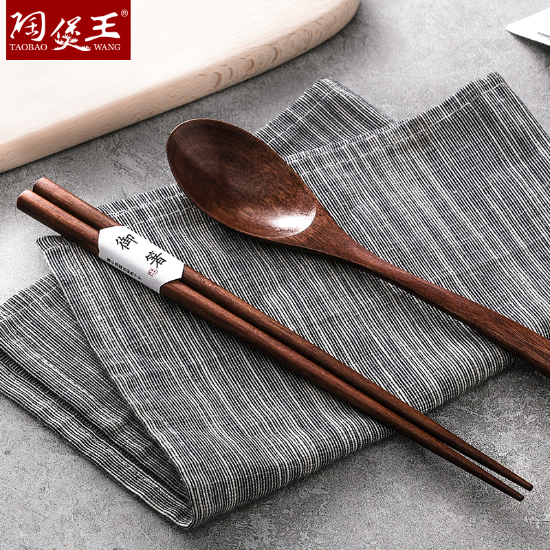 Pottery King Japanese Creative Wooden Spoon Fork Chopsticks Soup Spoon Dessert Fork Dessert Spoon Office Worker Portable Set