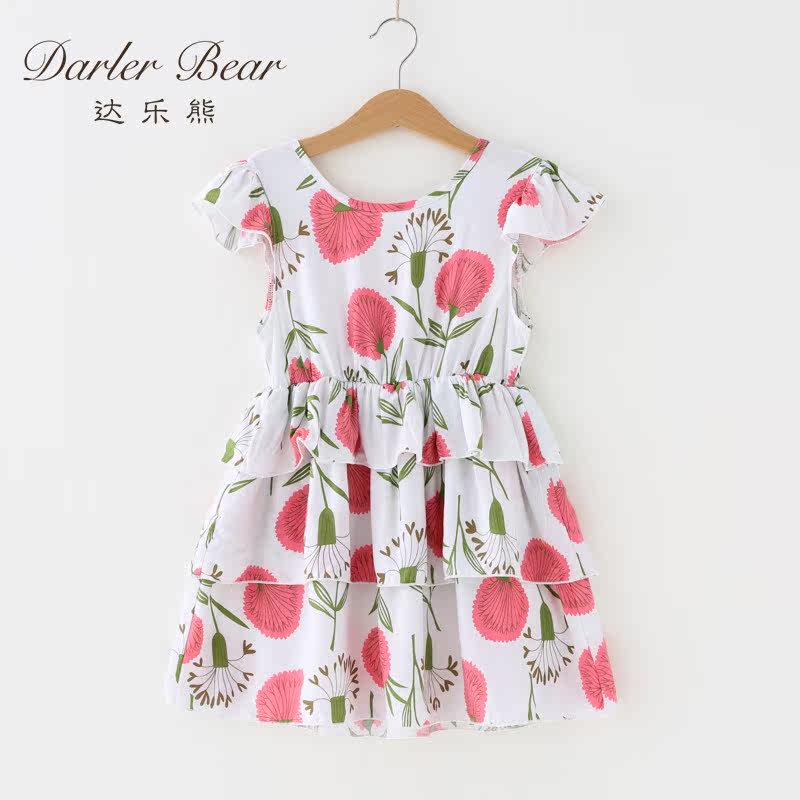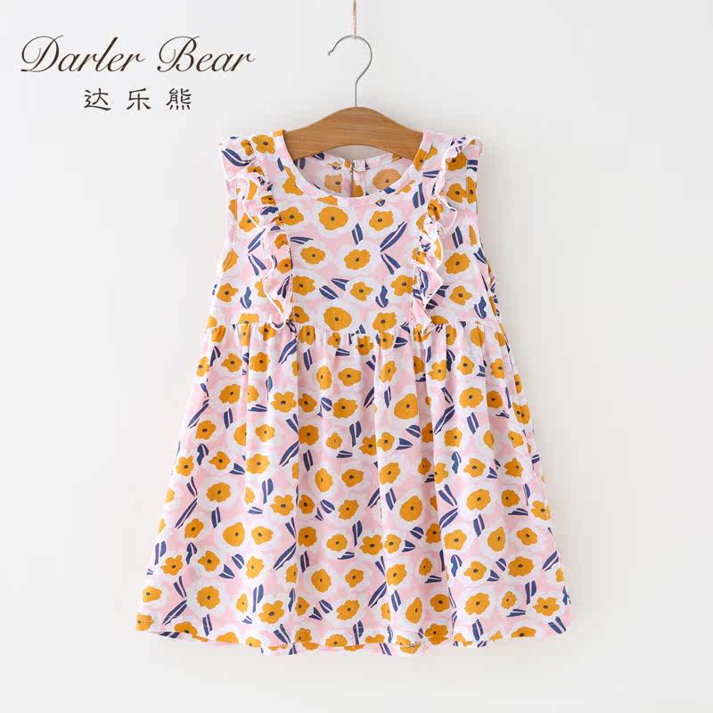 Girls Floral Dress Western Style Summer 2022 New Cotton Silk Children's Vest Skirt Pleated Skirt Girl Baby Skirt