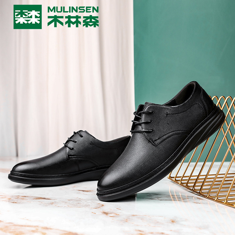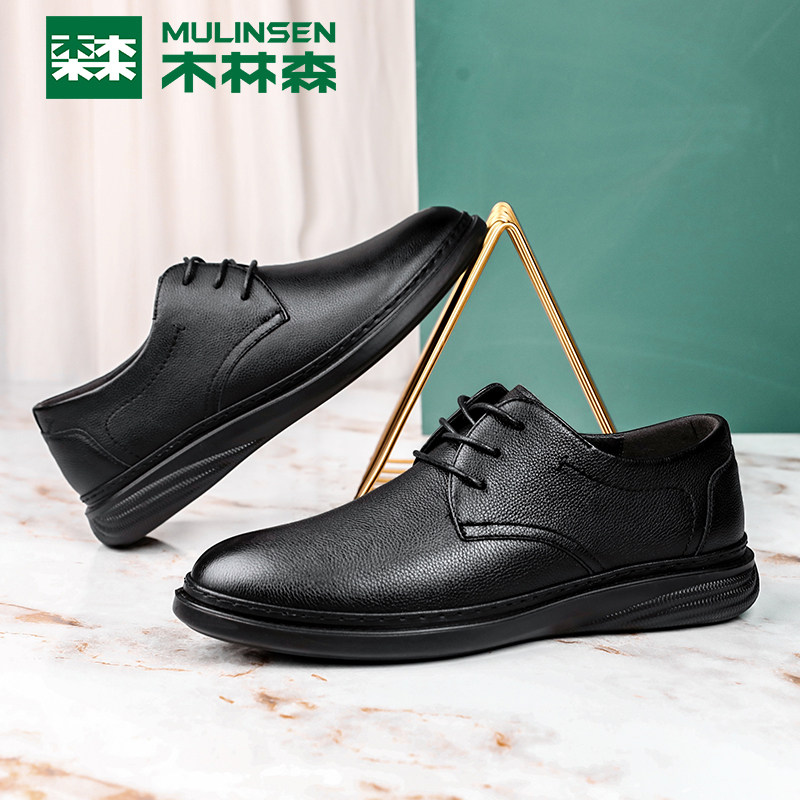 Wood Linson Men Shoes Business Casual Leather Shoes Spring Summer New Leather Breathable Men Soft Bottom Middle Aged Dad Shoes