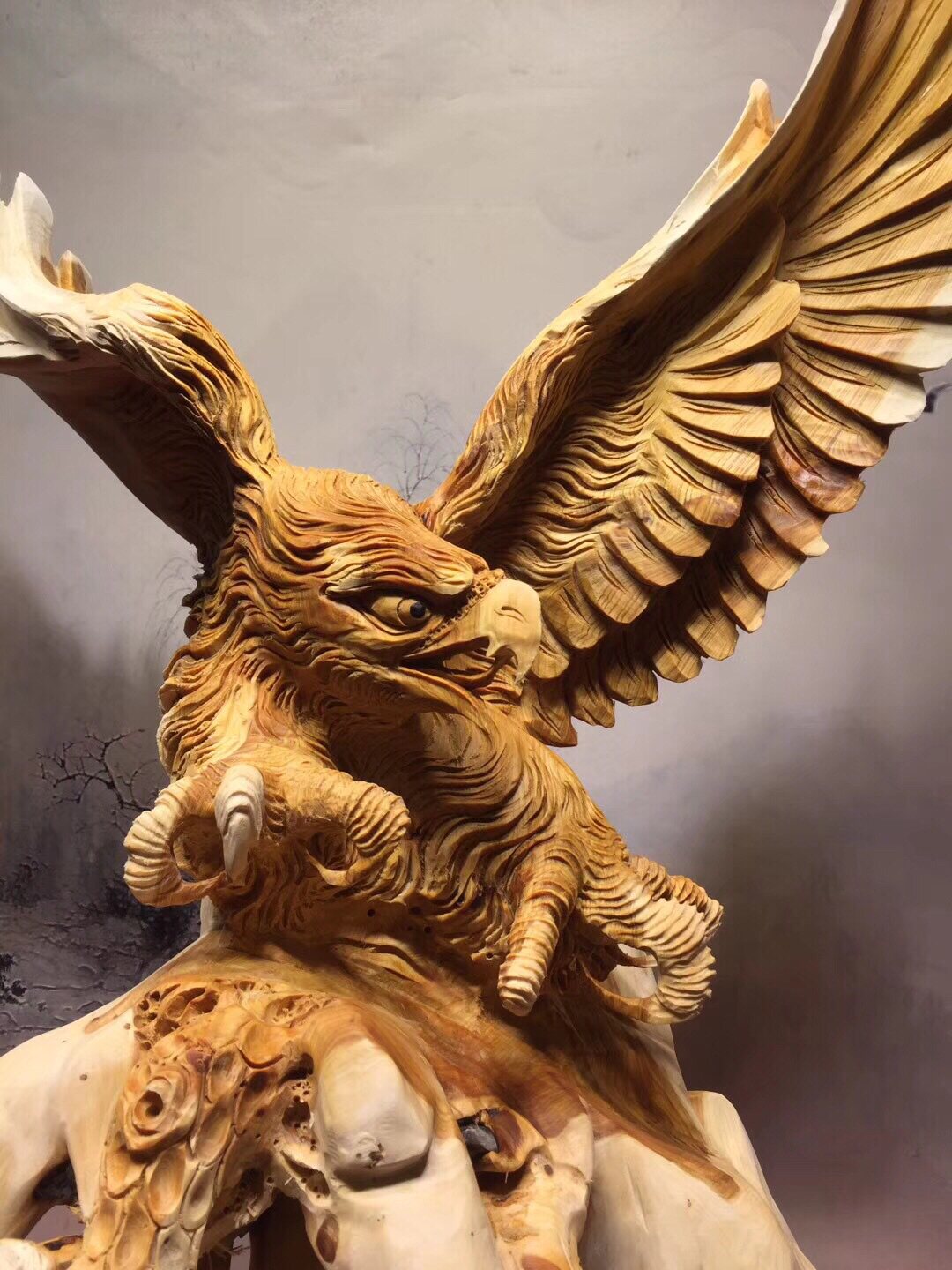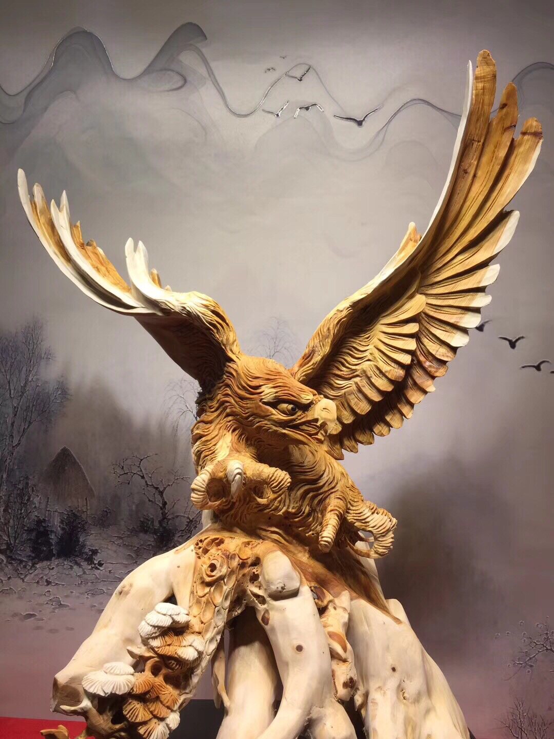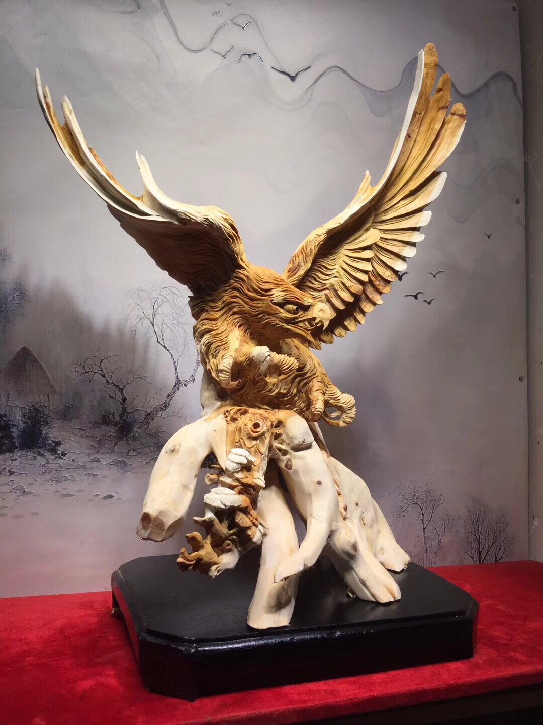 Root carving wood sculptor large exhibition Hongtu eagle Taihang Cliff Cypress Material Whole Material material clean and gift office pendulum piece