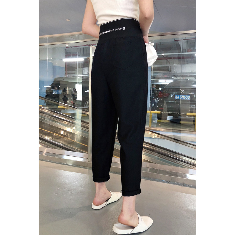 Europe station 2021 summer thin casual trousers women's straight ultra-high waist suit pants women's small feet show thin nine-point pants