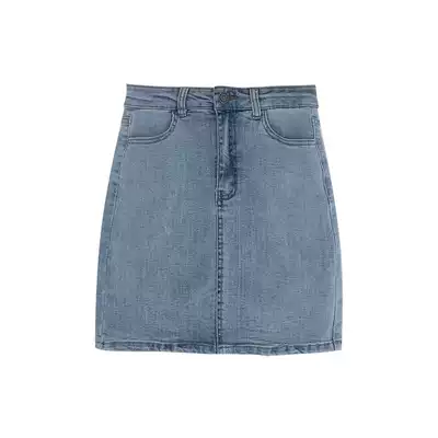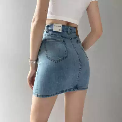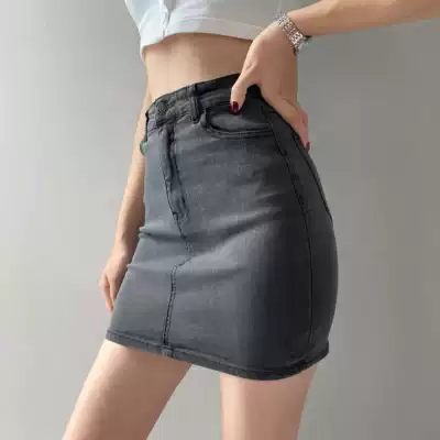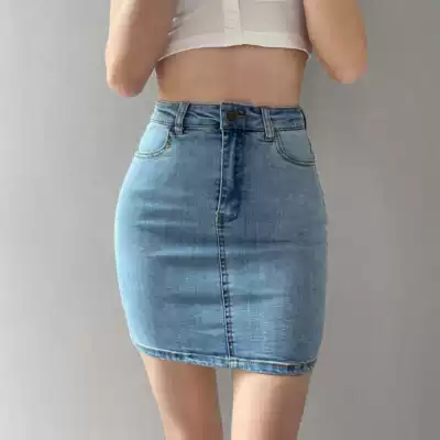 American retro high waist elastic bag hip skirt slim slim leg length A skirt slim button denim skirt