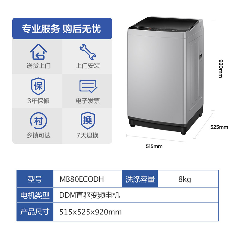 (Wash as you like) Midea 8KG frequency conversion small pulsator washing machine fully automatic home dormitory elution