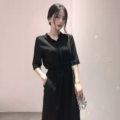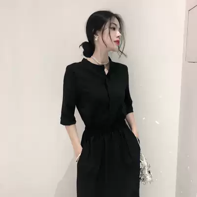 European station 2021 summer new thin black dress temperament waist Heben wind skirt small black dress women tide