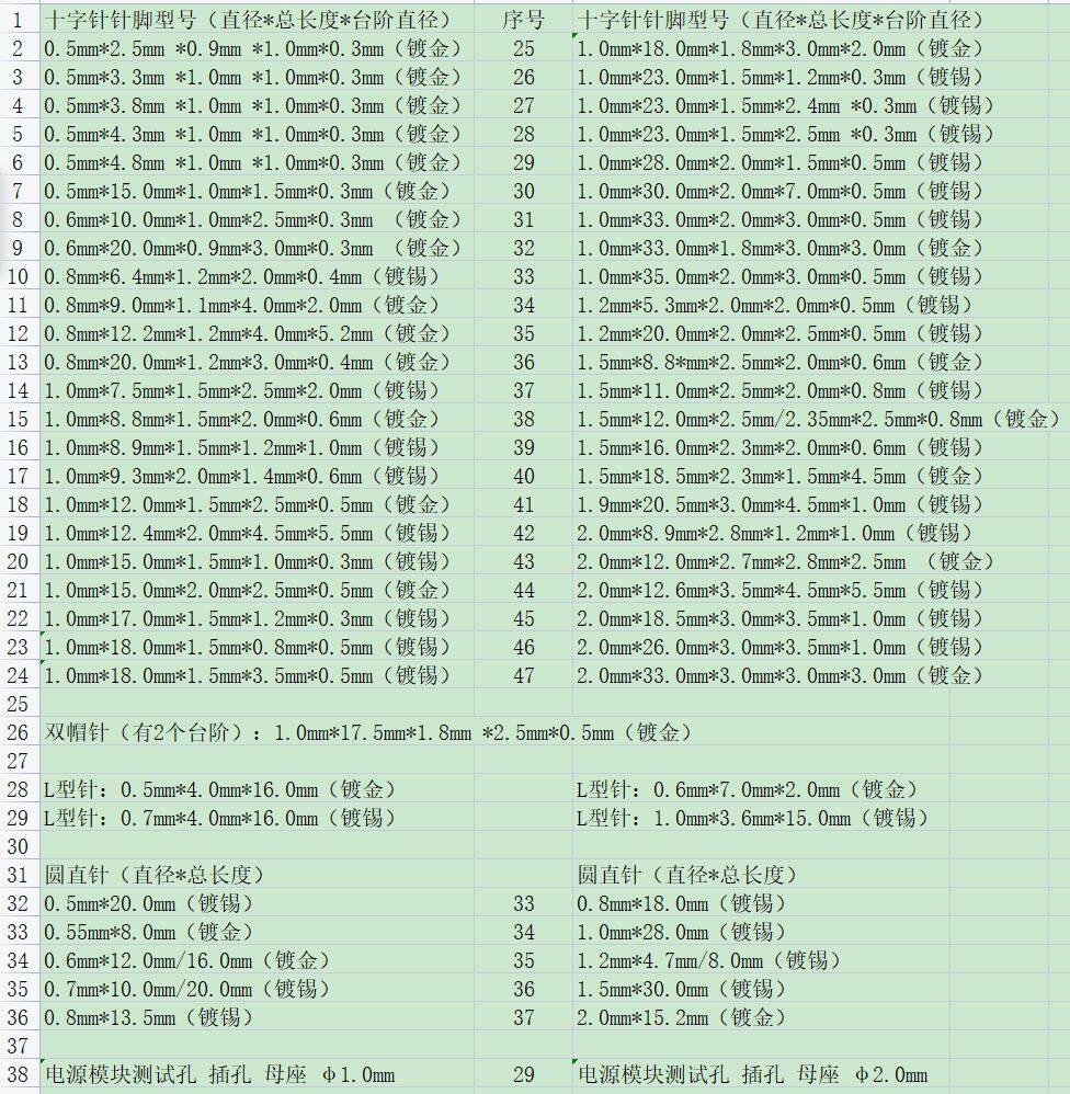Module power stitch pin pins gilded 0 8mm * 0mm 0mm * 1 5mm 100 packets