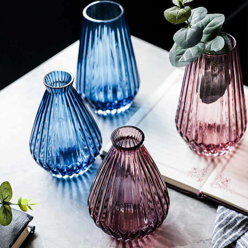 Nordic ins wind stained glass dry flower hydroponic vase home living room decoration creative origami flower arrangement small vase