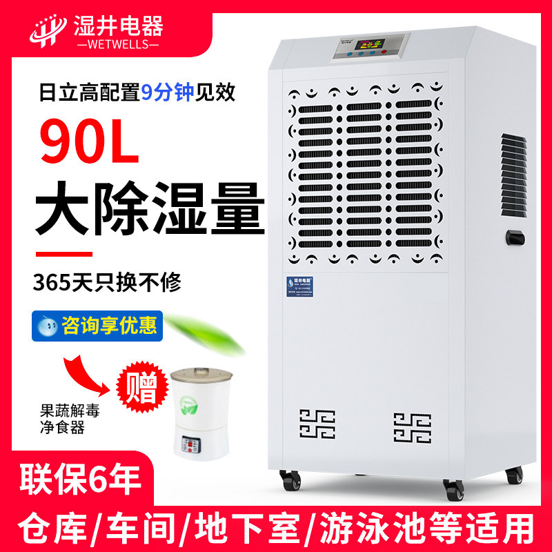 Wet well industrial high temperature resistant dehumidifier 90L high temperature workshop basement warehouse dehumidifier
