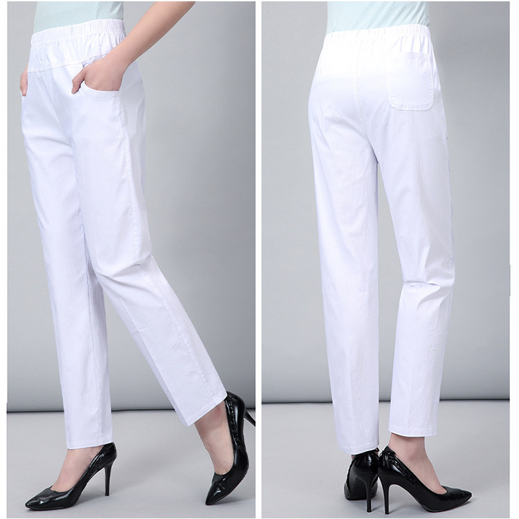 Middle-aged and elderly cotton pants women's spring and summer loose cotton elastic waist women's pants mother plus fertilizer plus size casual trousers