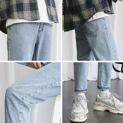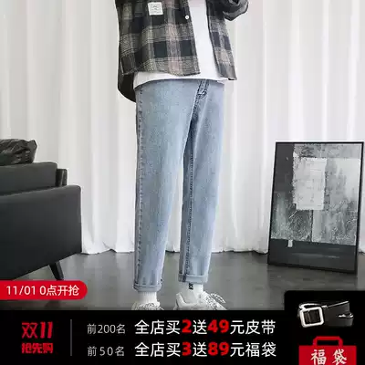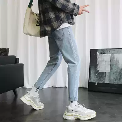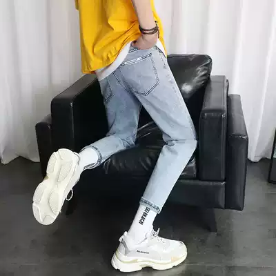 Light colored jeans men slim feet Autumn New ins pants tidal harbor wind tight stretch casual ankle-length pants