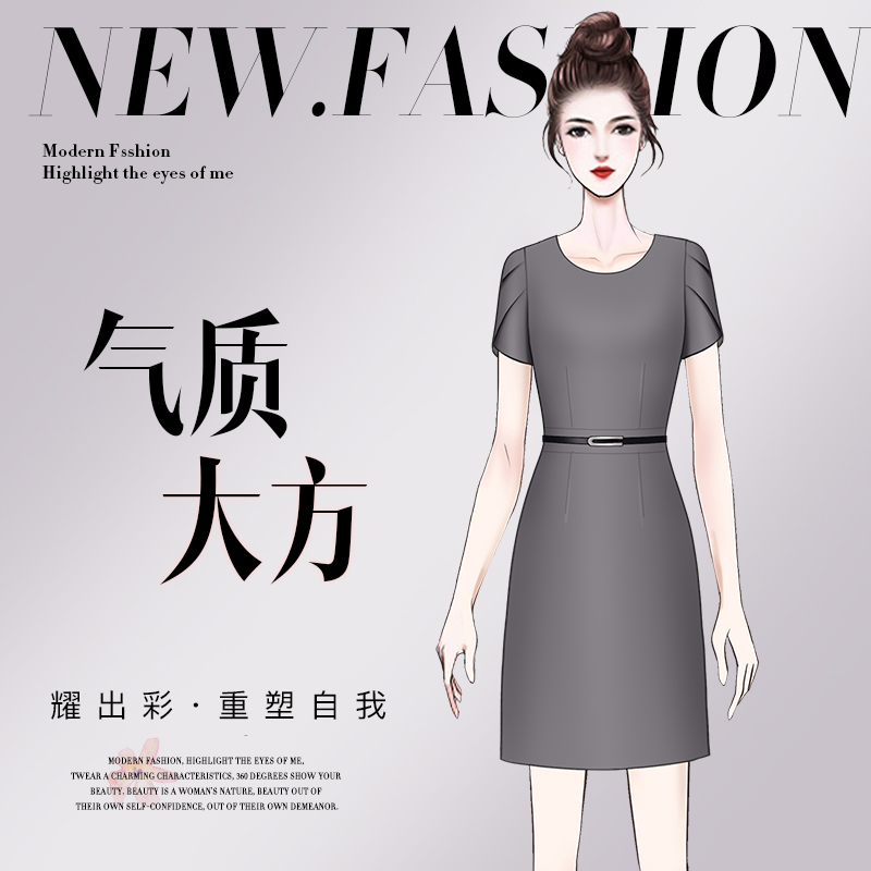 Summer dress 2022 new women's temperament waist and thin white-collar workplace light mature women's short-sleeved professional dress