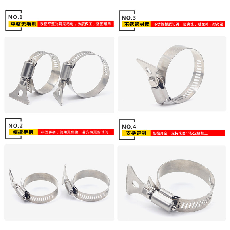 304 handle stainless steel throat hoop hand-tightened water pipe clamp clamp with handle hoop washing machine gas pipe clamp buckle