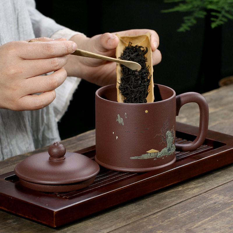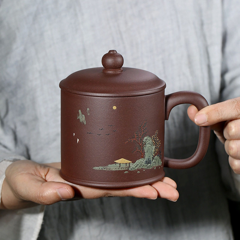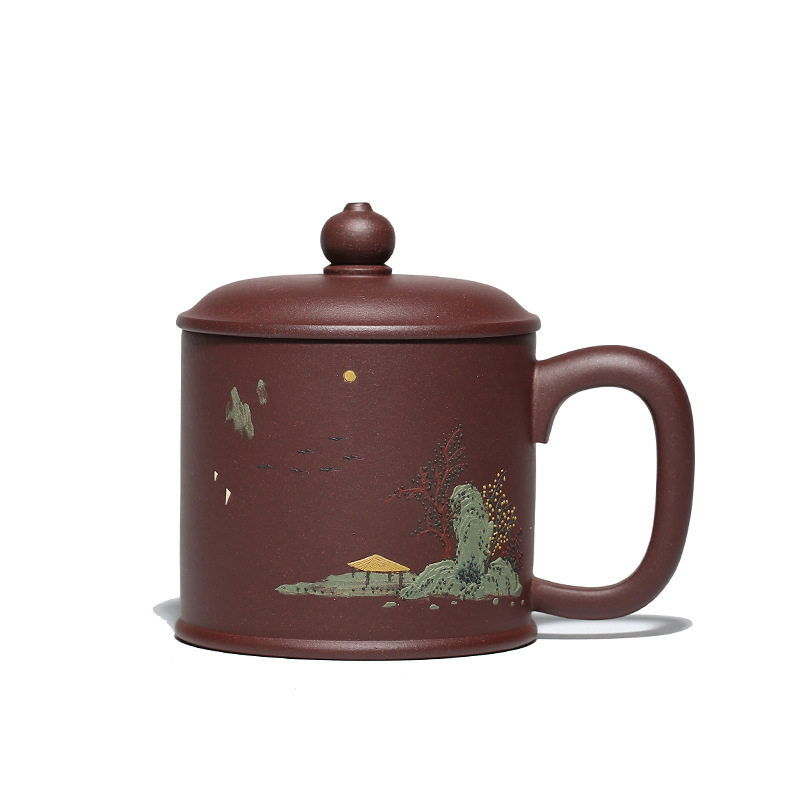 Yixing Original Mine Purple Clay Mountains Zhiyuan Cover Cup Clay Painting Technique Purple Sand Cup Tea Set Gift customization