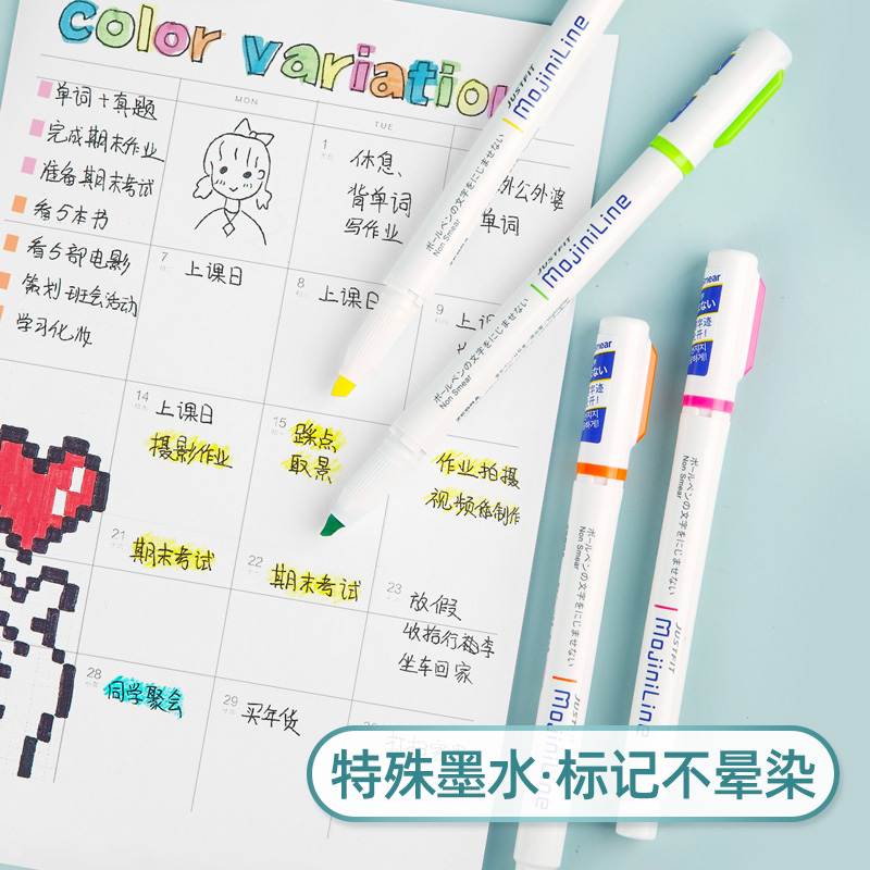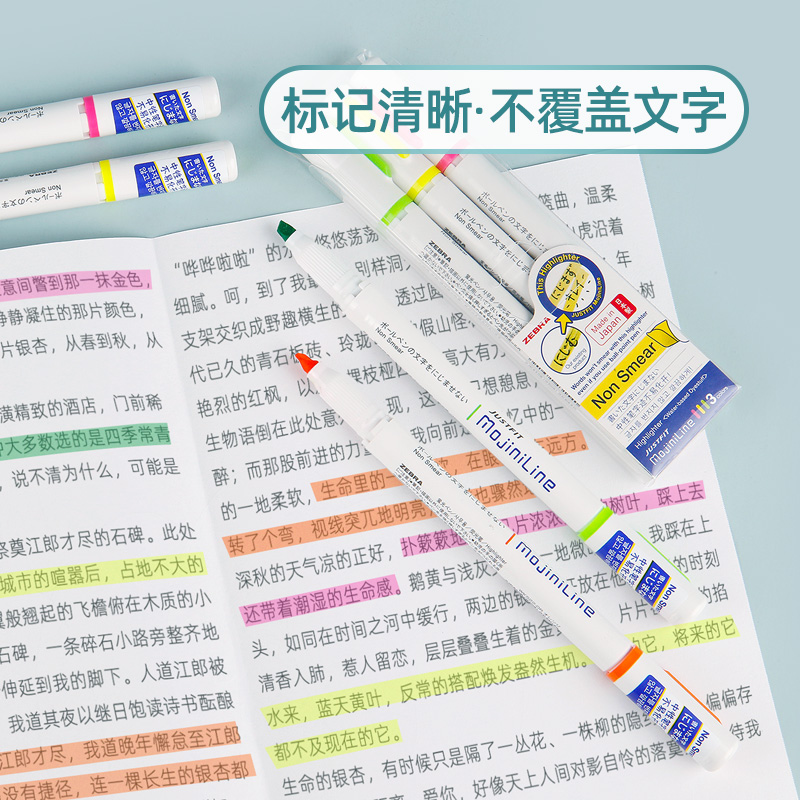 Japanese ZEBRA zebra non-ink fluorescent pen WKS22 students with color mark note number pen rough stroke focus on the note god shaking with the same hand account pen set silver light review pen