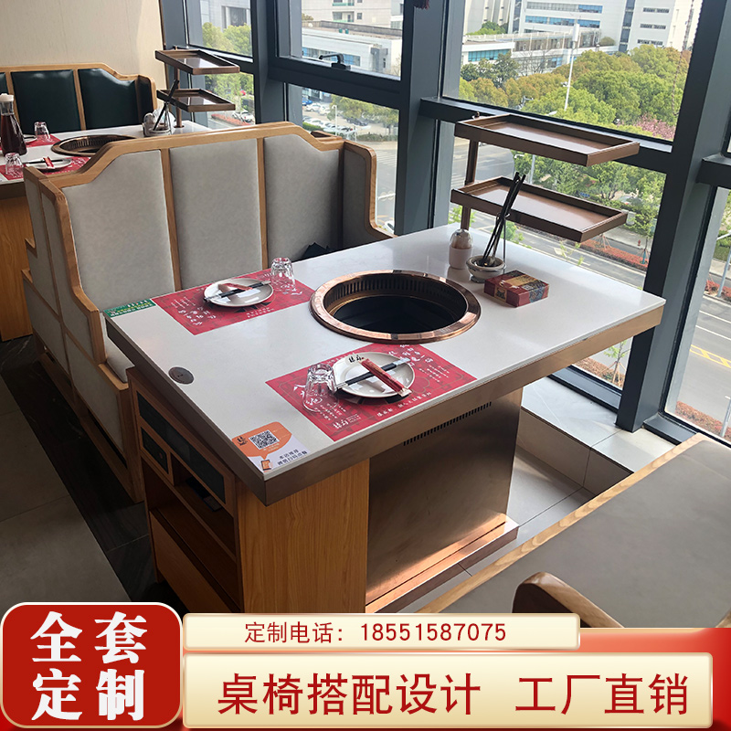 Marble Haidilao Hot Pot Table Induction Cooker Integrated Smoke-free Restaurant Roast Shabu Commercial Solid Wood Table and Chair Combination