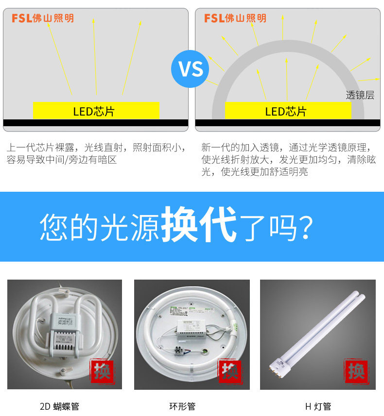 Foshan Lighting Ceiling lamp retrofit light board LED light bar round replacement light plate square ring wick bulb