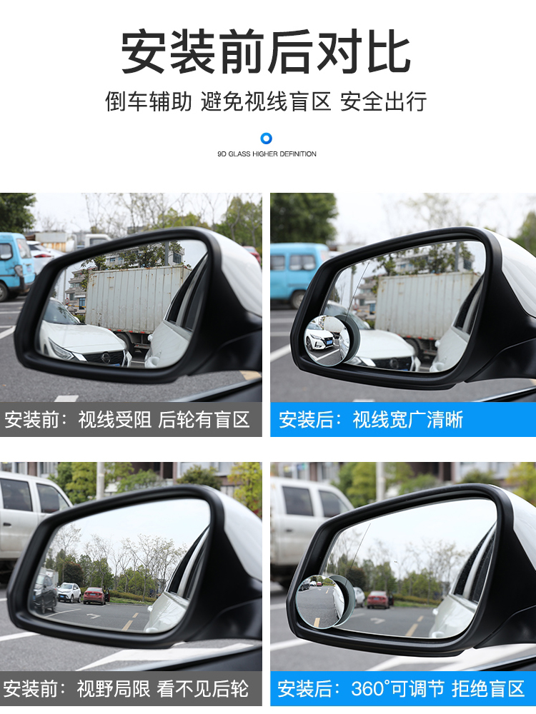 Rear mirror small round mirror car trolley reversing blind area assisted reflective small mirror HD 360 degree large view