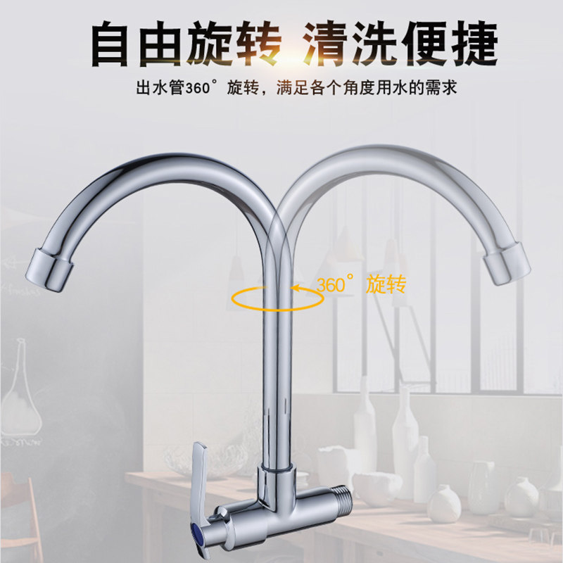 Full Copper Single Cold Tap Wash Basin Tap Kitchen Tap Kitchen Tap Into Wall Type Tap Laundry Pool Tap