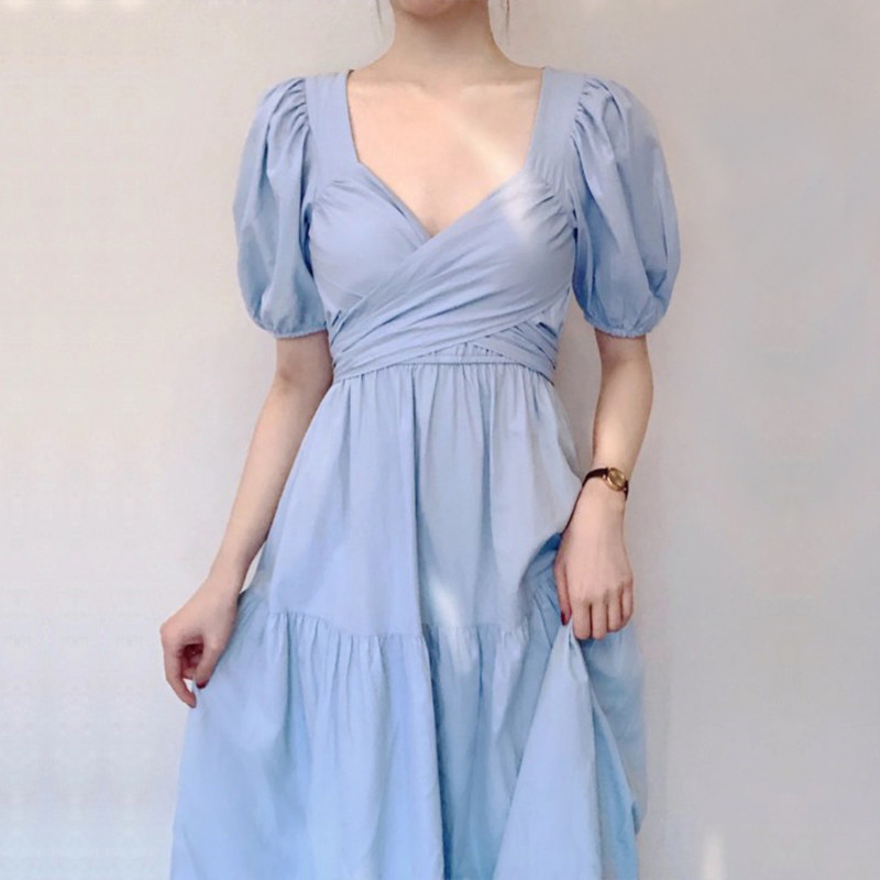 2020 New Year Summer New women's dress Big size Burst Blue Dress Sexy Temperament Goddess Van Clothing Foreign Dress