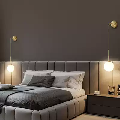 Light luxury wall lamp Bedroom bed head lamp Nordic modern minimalist living room background wall creative hanging line all copper aisle wall lamp