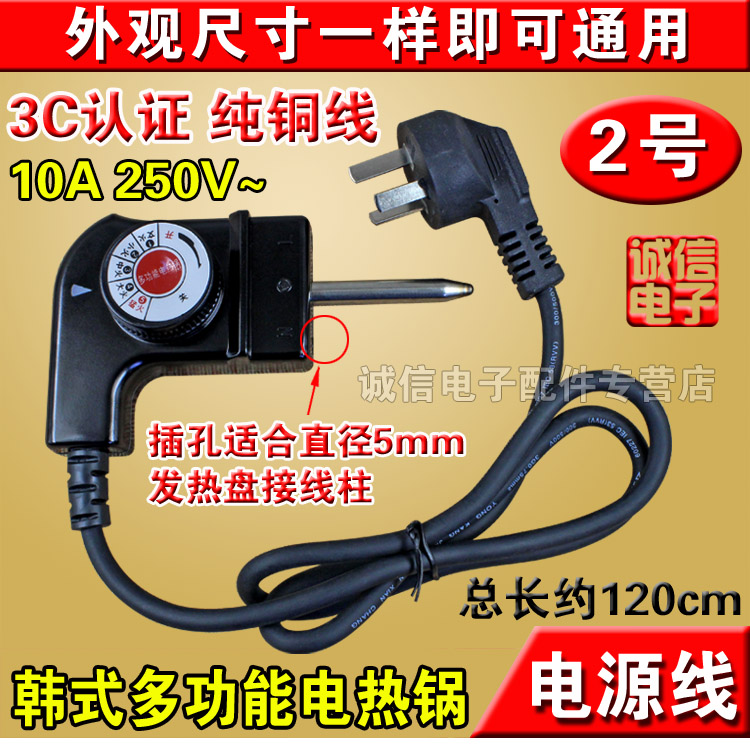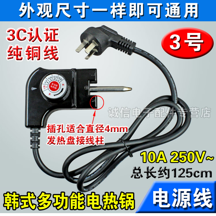 Han Style Multifunction Cuisine Pan Power Cable Electric Frying Pan Triple Hole Plug Line Electric Hot Pot Thermoregulation Line Accessories