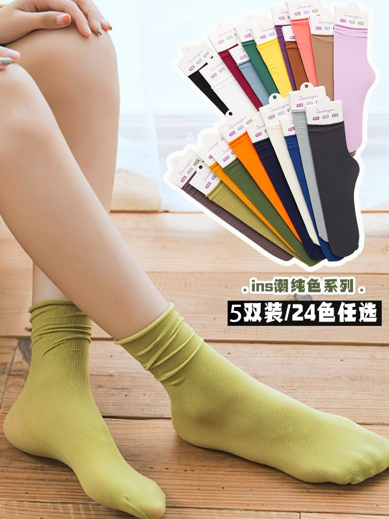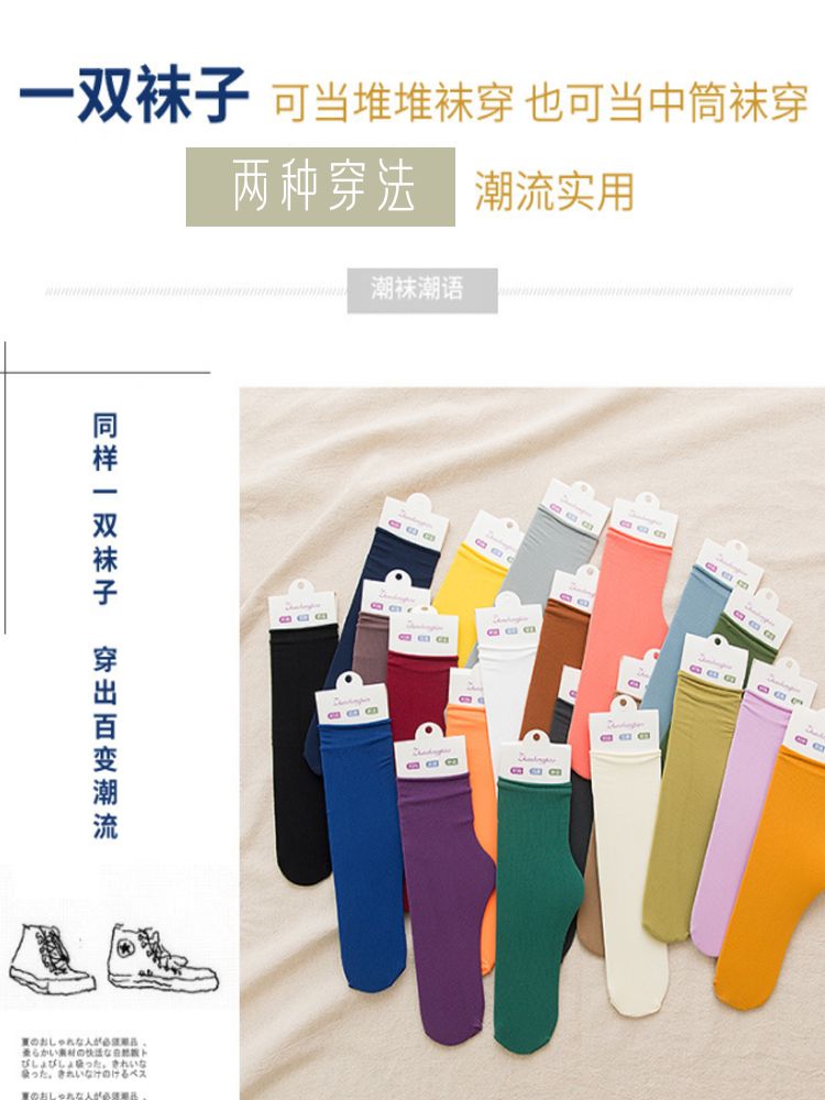 Thin Bubble Socks Children Ins Tide Spring Summer Pure Color Velvet Ladies'Thin' Day Ensemble Cute Mid-Barrel Women Socks