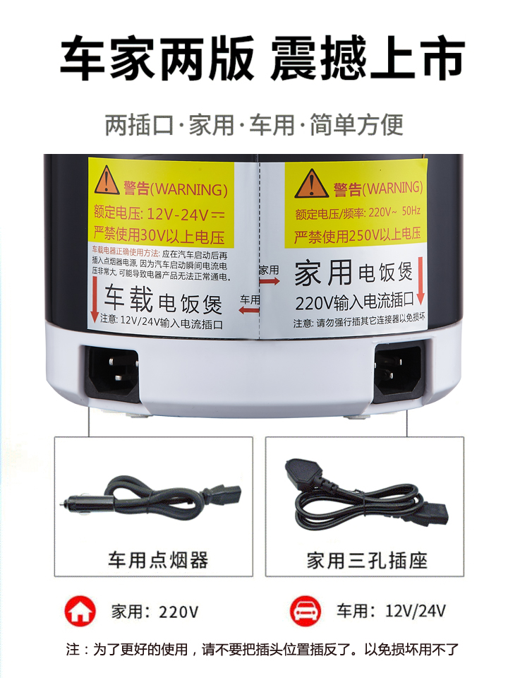 Vehicular electric rice cooker 24v large wagon 12v trolley Multi-functional cooking car Home Dual-purpose 12 V Car electric rice cooker
