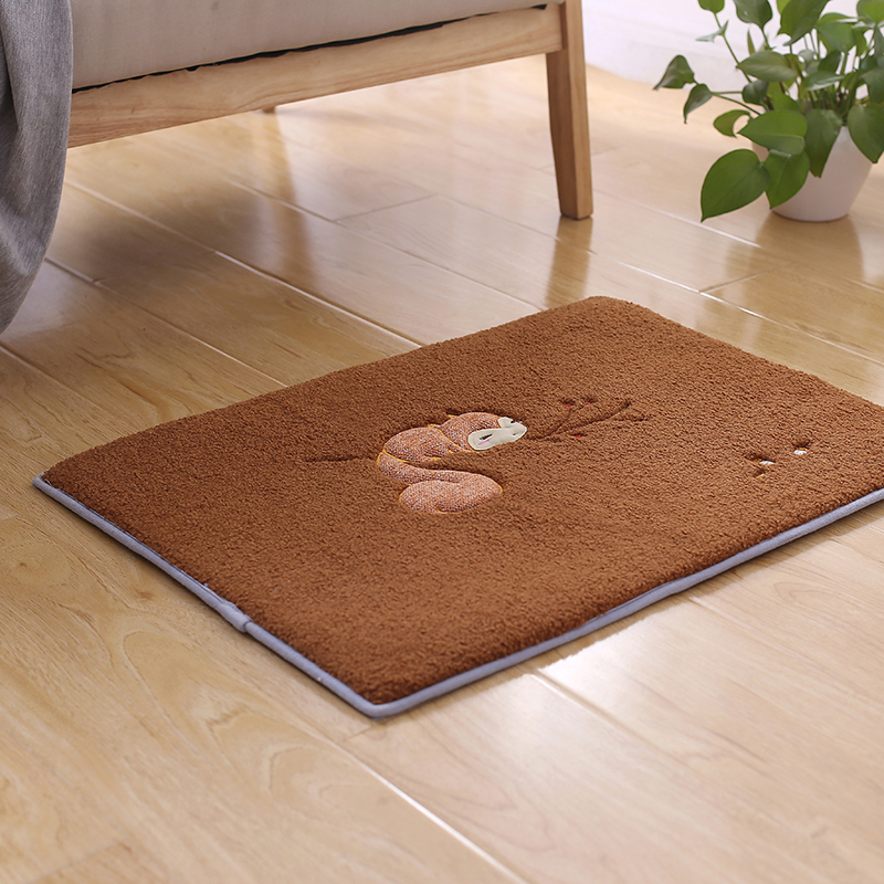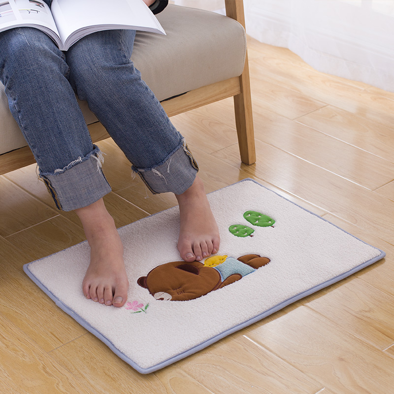 Nordic thickened mats Oil-proof non-slip household scrubbable carpet Kitchen mats Cute embroidery