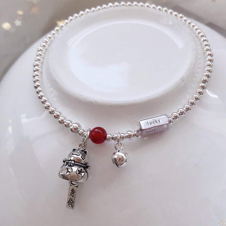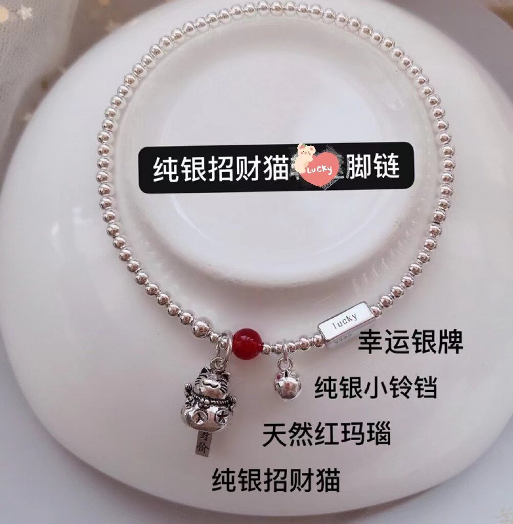2022 pure silver pedicure S925 silver Merchants Cat Red Manau Sexy Ankle Chain Bell Bell Small Round Pearl Silver Decorated Foot Ring