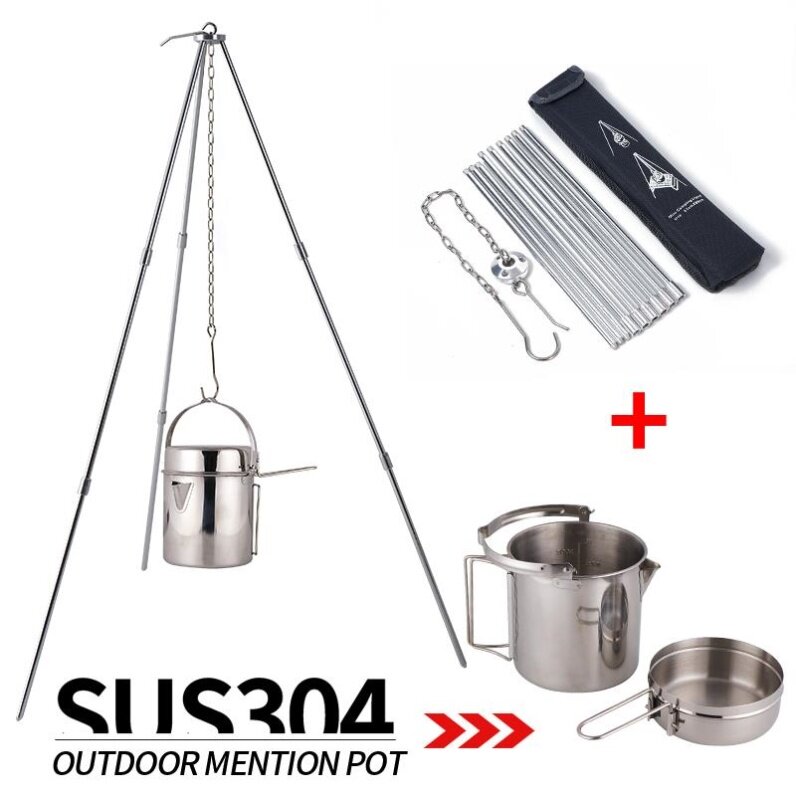 Camping Outdoor Camp Fire Tripod Camping Aluminum Alloy Three-section Suspension Boiler Bracket Barbecue Campfire Tripod