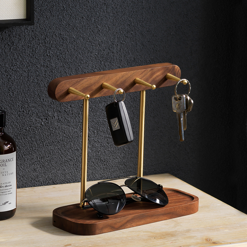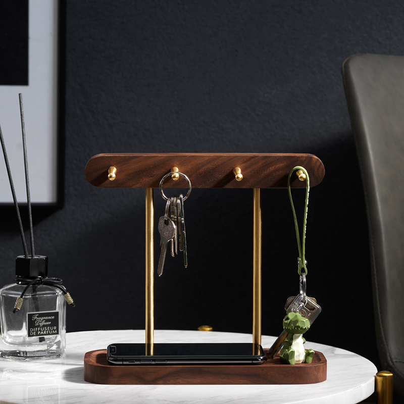 Black Walnuts Wood Key Shelf Creative Pendulum Door Brass Hook Shelve Shelf Desktop Genguan Key Rack Containing Box