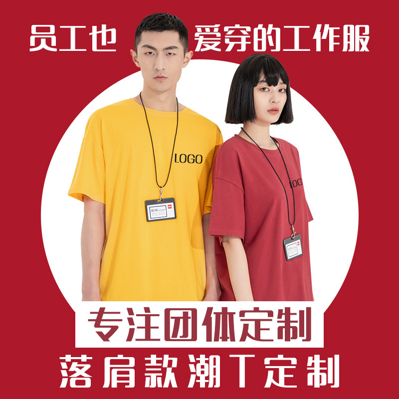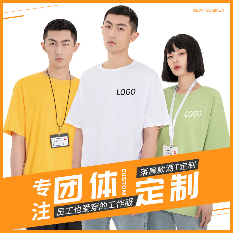 Work clothes custom T-shirt printed logo Short-sleeved pure cotton class clothes off-the-shoulder loose tide brand group construction clothes custom summer