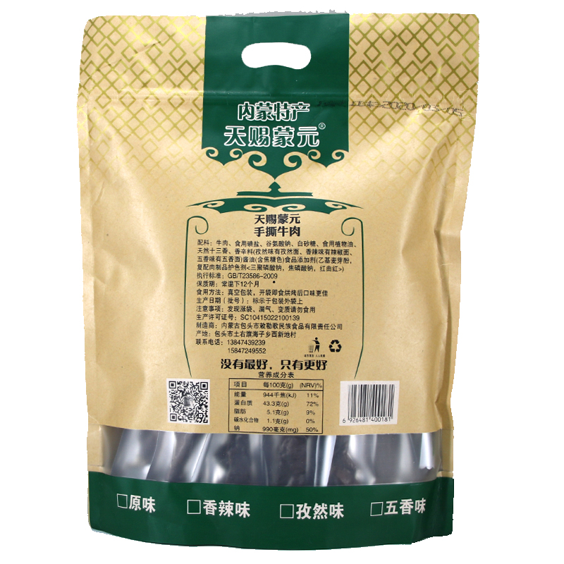 Tianci Mengyuan hand-torn beef 500g Inner Mongolia specialty air-dried beef jerky snacks snacks specialty cooked food vacuum
