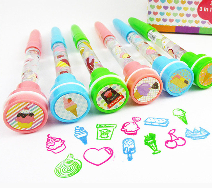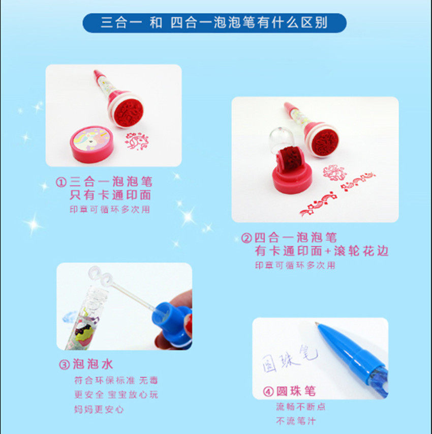 Net red vibrato same cartoon seal bubble pen ballpoint pen multifunctional student ballpoint pen seal pen blow bubbles