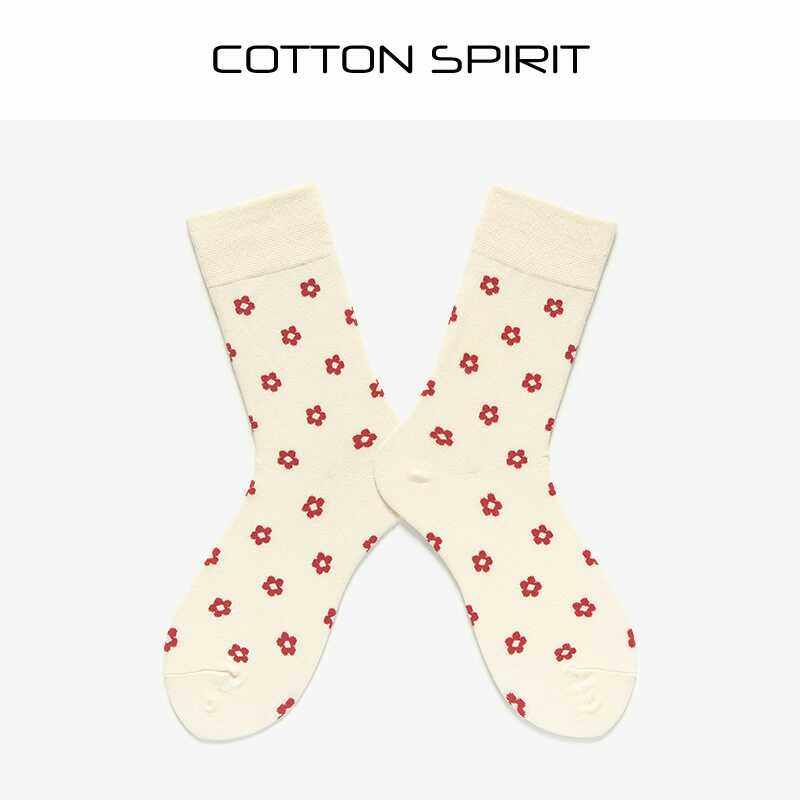 Cotton spirit Korean Hyunya style socks small flower women's socks ins small red flower middle tube socks cotton socks