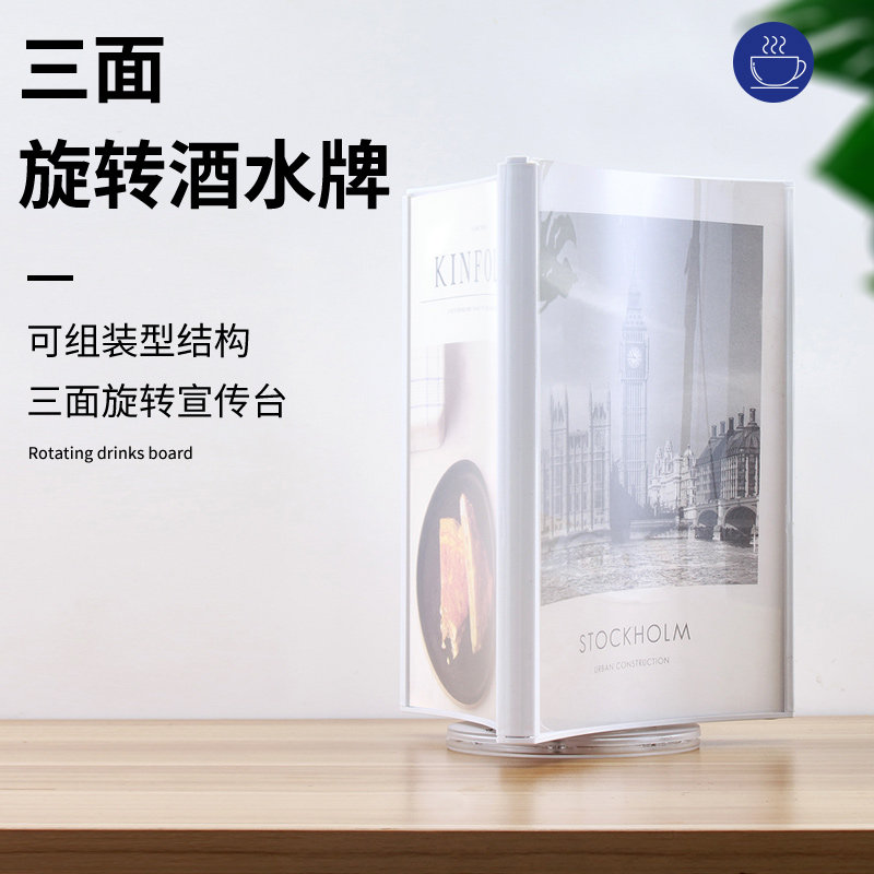 A4 three-sided revolving table card white liquor brand black desktop triangle table card standing display stand office bank telecom table menu billboard a4 revolving table sign