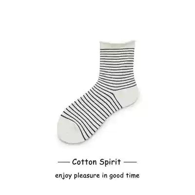 Cotton Spirit Striped Socks Children's Stockings Japanese Joker Simple Harajuku Fashion Black and White Curled Lap Socks