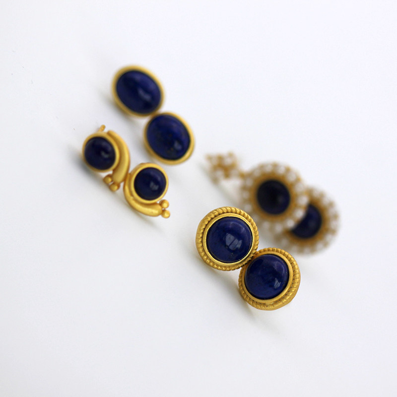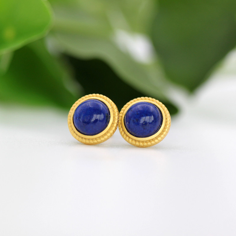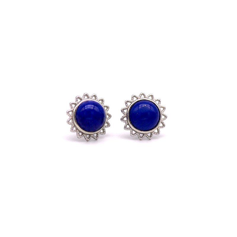 Lapis lazuli stud earrings pearl snail oval 925 sterling silver hand-set with vintage ethnic fashion diy accessories