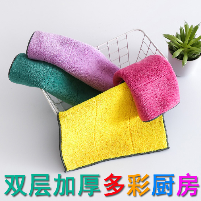 Double layer thickened water-absorbing dishwashcloth not stained with oil rag for home kitchen supplies not easy to fall off the scrub table Baise