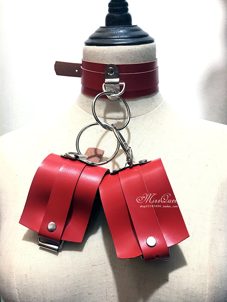Foreign trade European and American handcuffs neck ring neck ring set metal leather sexy seduction bundle bondage provocative accessories