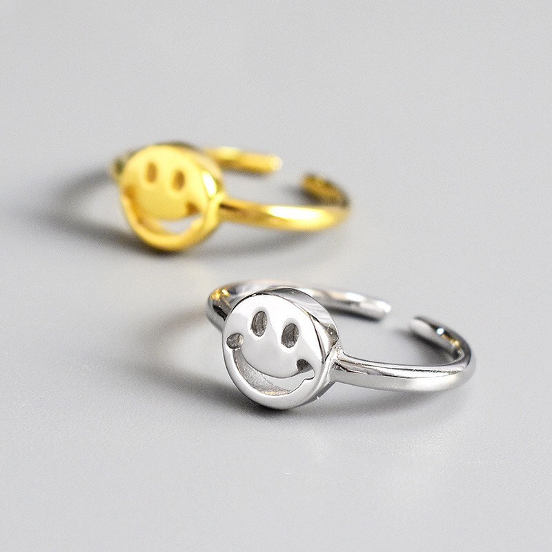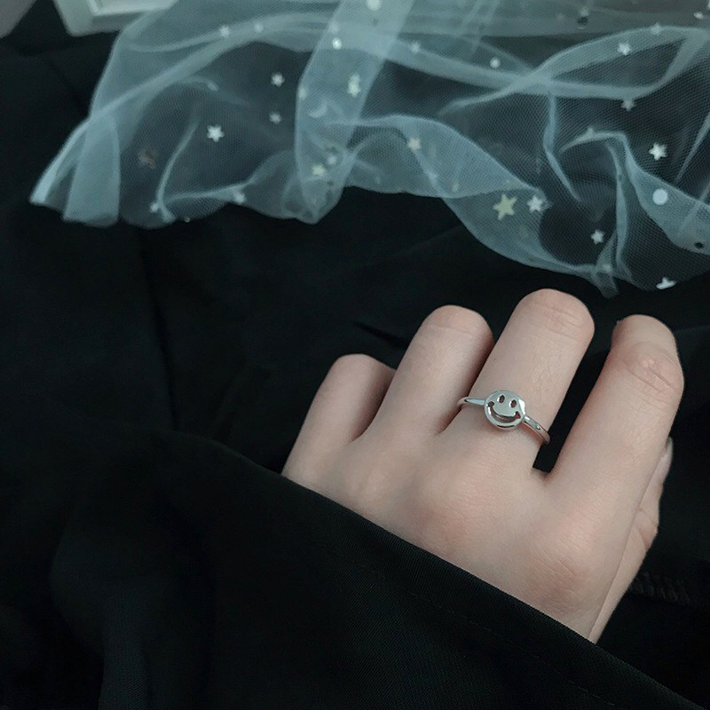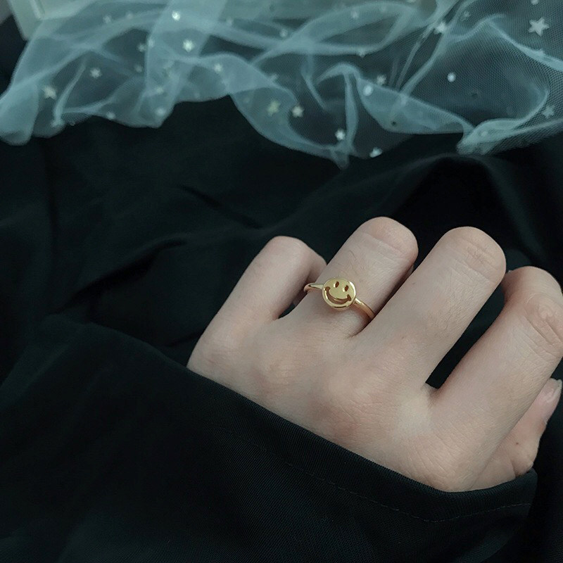 Sterling silver smiley face ring South Korea Dongdaemun women's smile glossy ring personality chic middle ring 2020 new