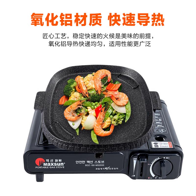 Pulse fresh wheat rice stone baking plate Outdoor self-driving tour portable barbecue plate cassette stove household square barbecue plate non-stick plate
