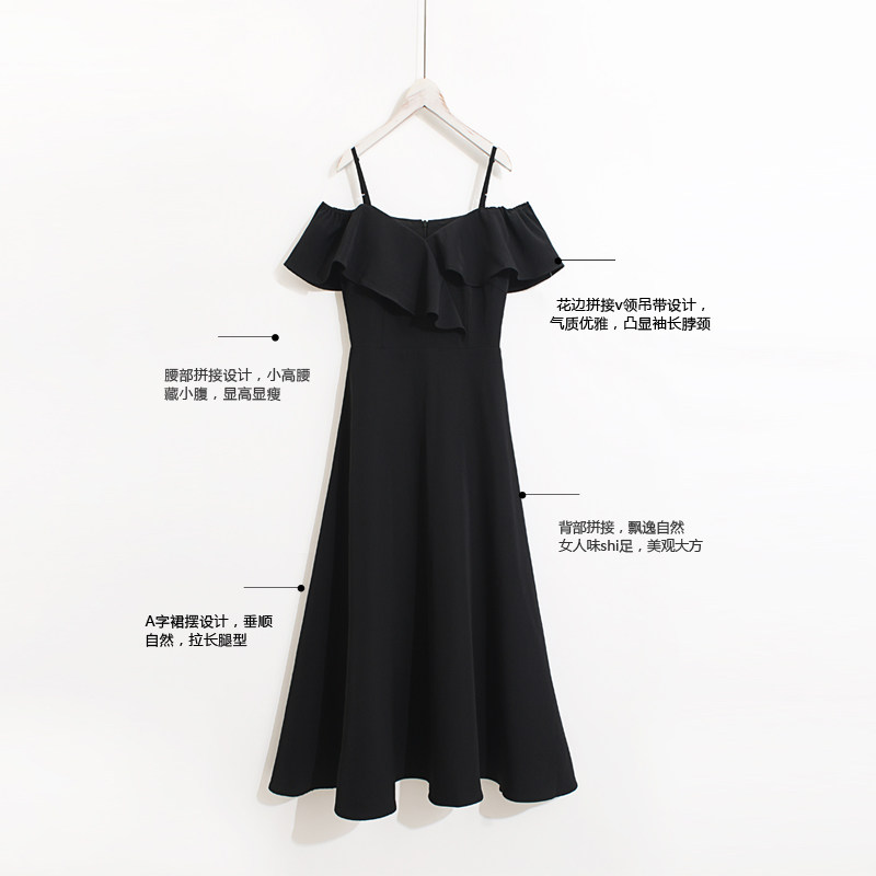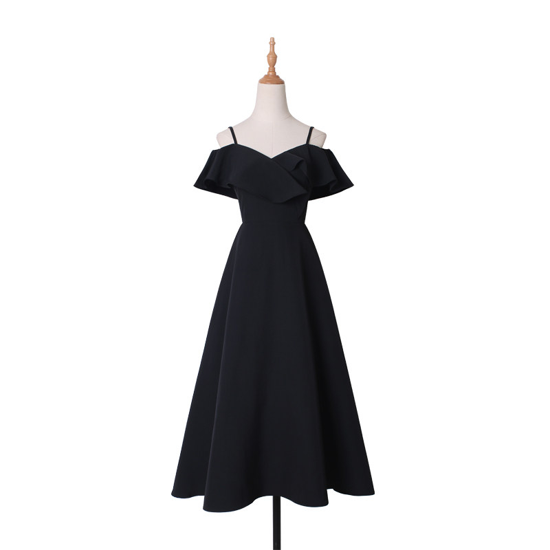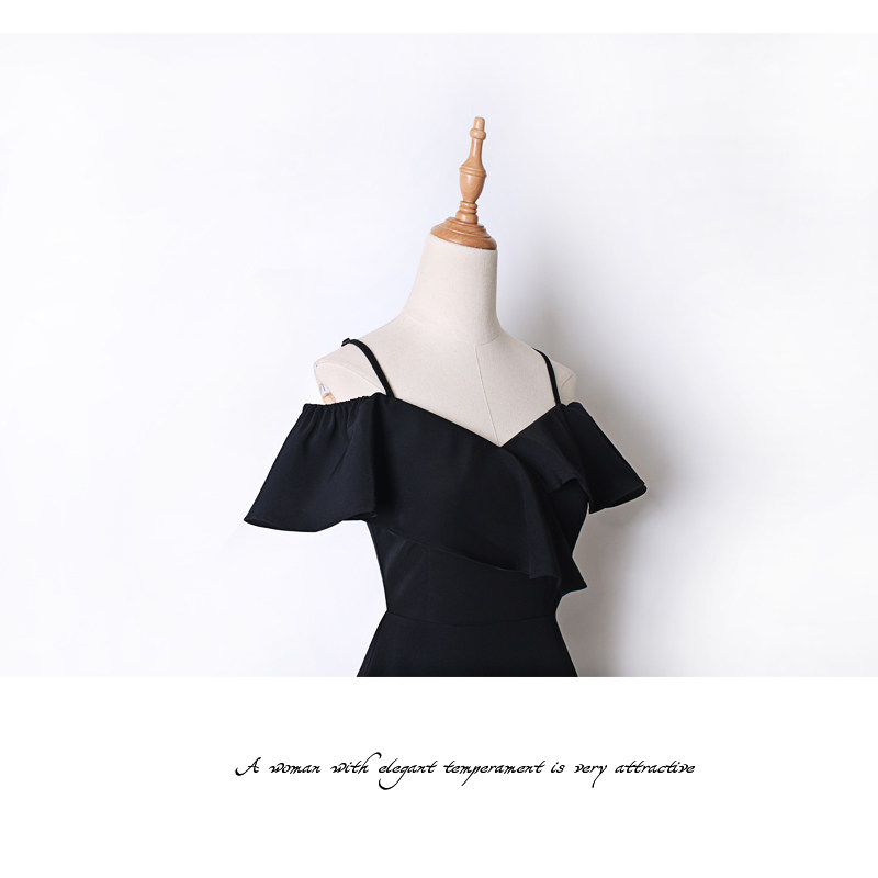 Hepburn Wind Dress Female French Shoulder Shoulder Small Black Dress Summer Slim Skin Renaissance